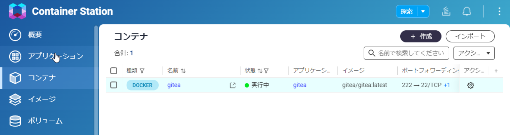 QNAP NAS(TS-133)の「Container Station 3」でGitLabを動作させようと調べたところ動作条件が厳しそうなので、giteaを動作させることにしました。