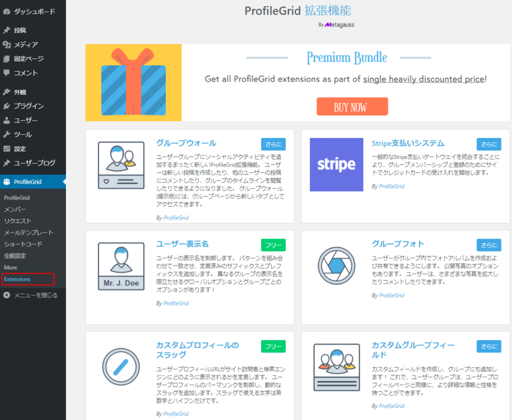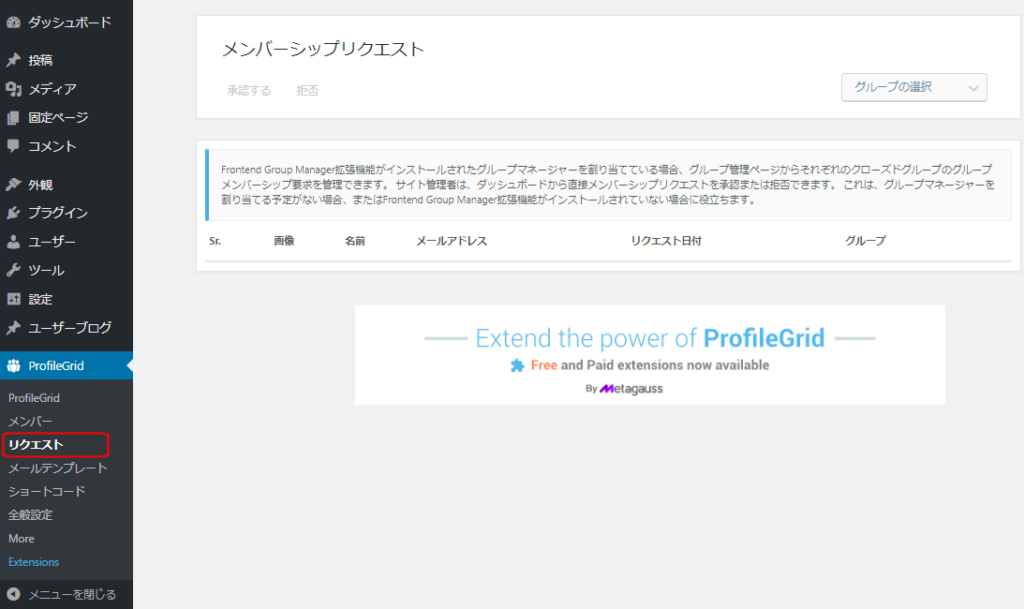 ・[ProfileGrid]メニューには、[グループマネージャ]が表示されます。